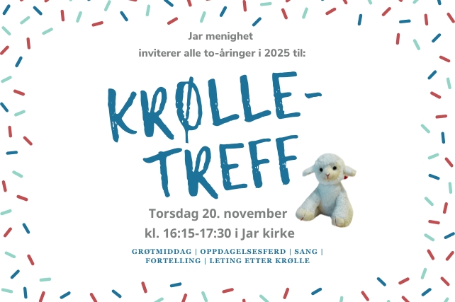 Krølletreff er en del av Jar menighets trosopplæringsplan. Hvert år inviteres døpte barn til et opplegg i kirken, for å bli kjent med kirken, andre jevnaldrende, oss som jobber i kirken og den kristne troen. Vi kan bare sende invitasjon til de som er medlem (døpt) eller trosopplæringsabonnenter, men alle er hjertelig velkomne til å melde seg på. Velkommen til kirken!