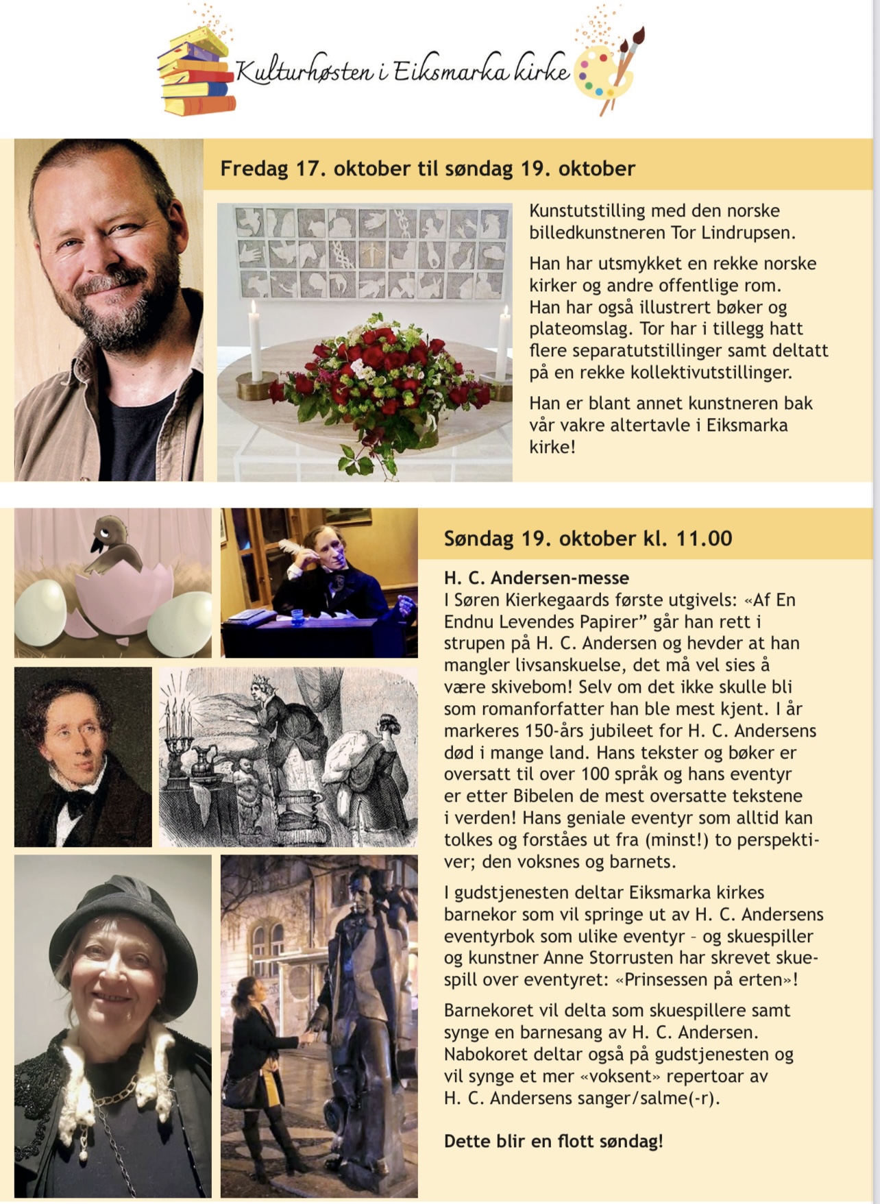 Tor Lindrupsen åpner sin kunstutstilling i Eiksmarka kirke lørdag 18. oktober kl. 15.00!