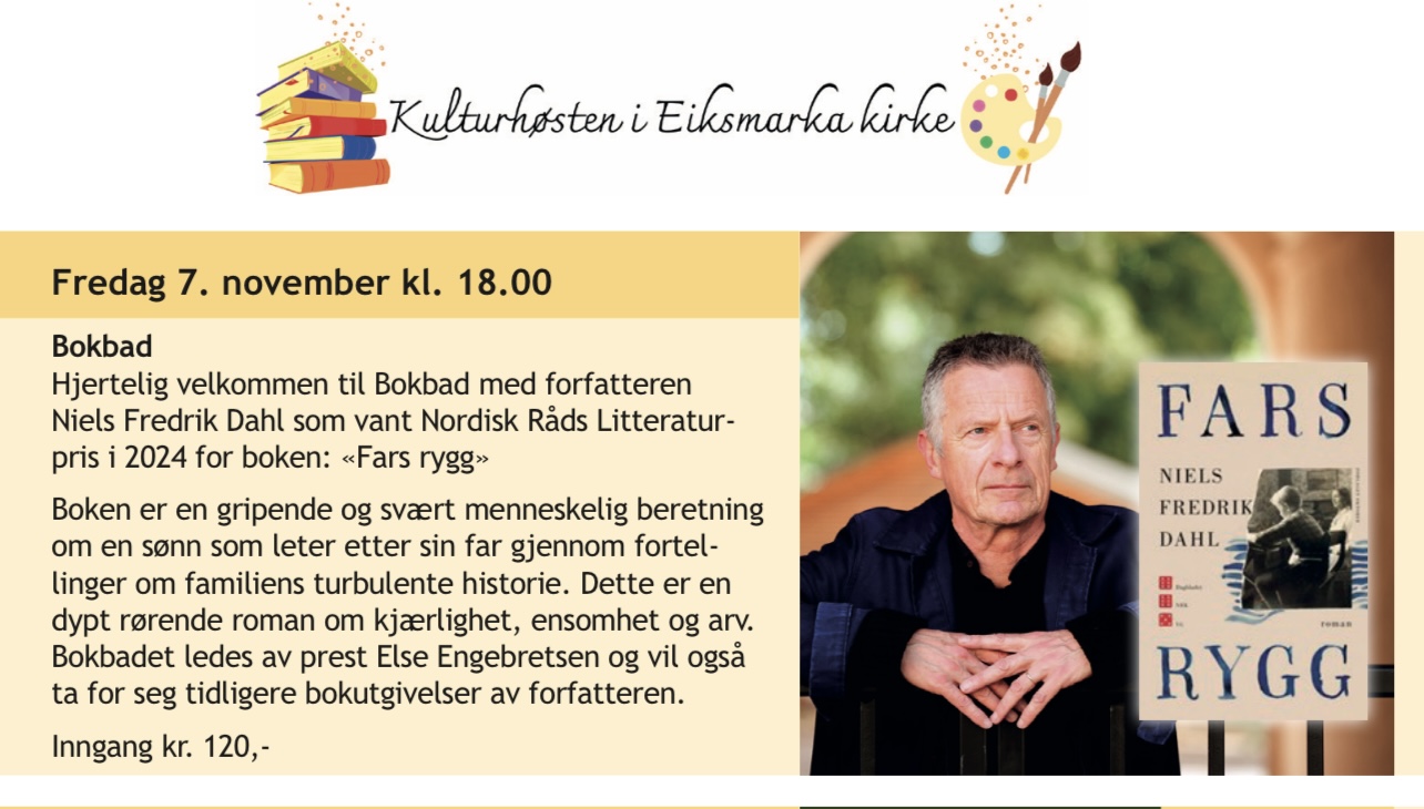 Bokbad med Niels Fredrik Dahl fredag 7. november kl. 18.00 i Eiksmarka kirke