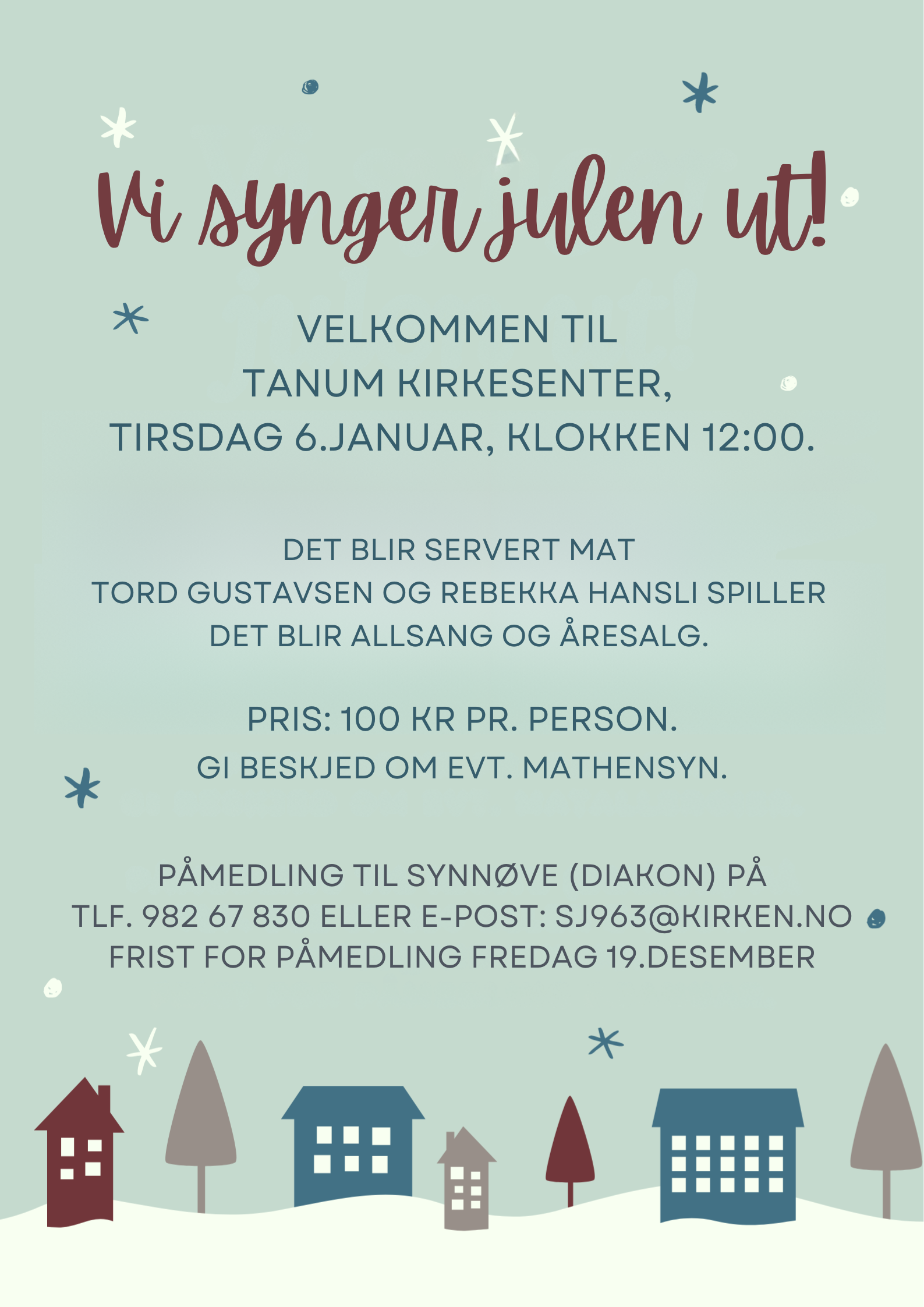 Velkommen til "vi synger julen ut!" på Tanum kirkesenter, tirsdag 6.januar, klokken 12:00