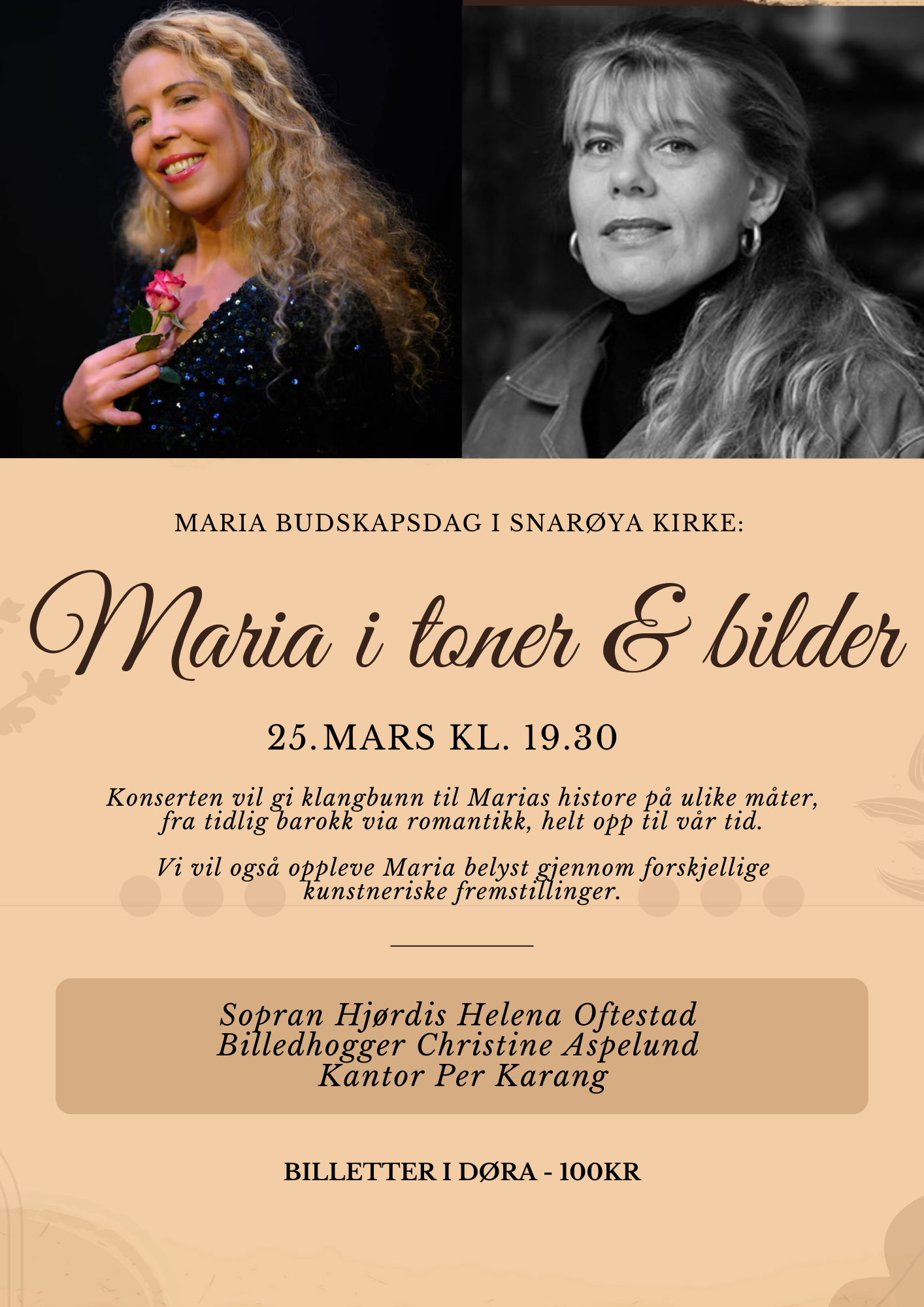 25. mars er det Maria budskapsdag. Vi markerer dagen med en spennende kulturaften i Snarøya kirke kl. 19.30. Sopran Hjørdis Helena Oftestad...